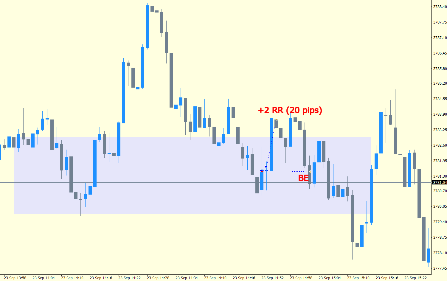 50%のポジションは+ 2 RRで利益確定。残りのポジションはトレーリングするつもりでしたが、伸びずに、ブレークイーブンで終わりました。