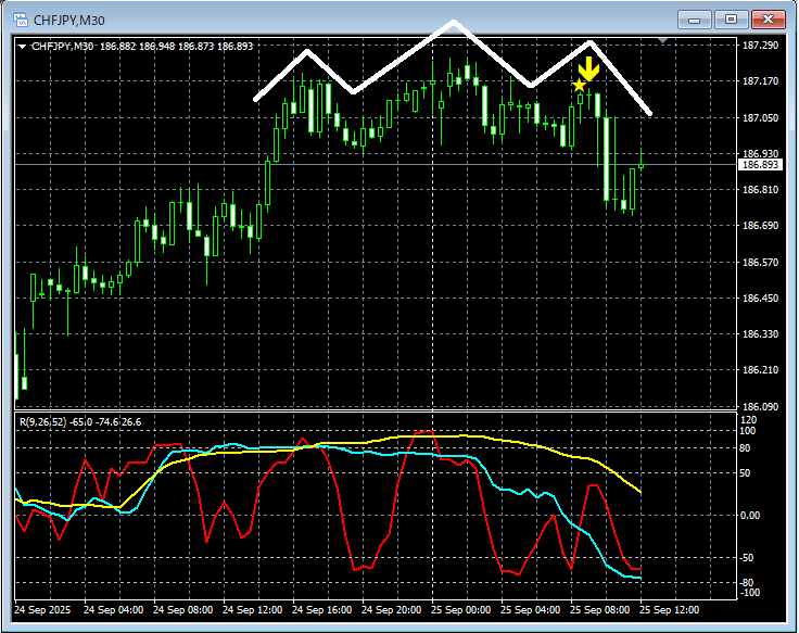 【RCIを極めて勝つ!!】三尊とmBDSRの戻り売りサイン スイスフラン円 30分足
