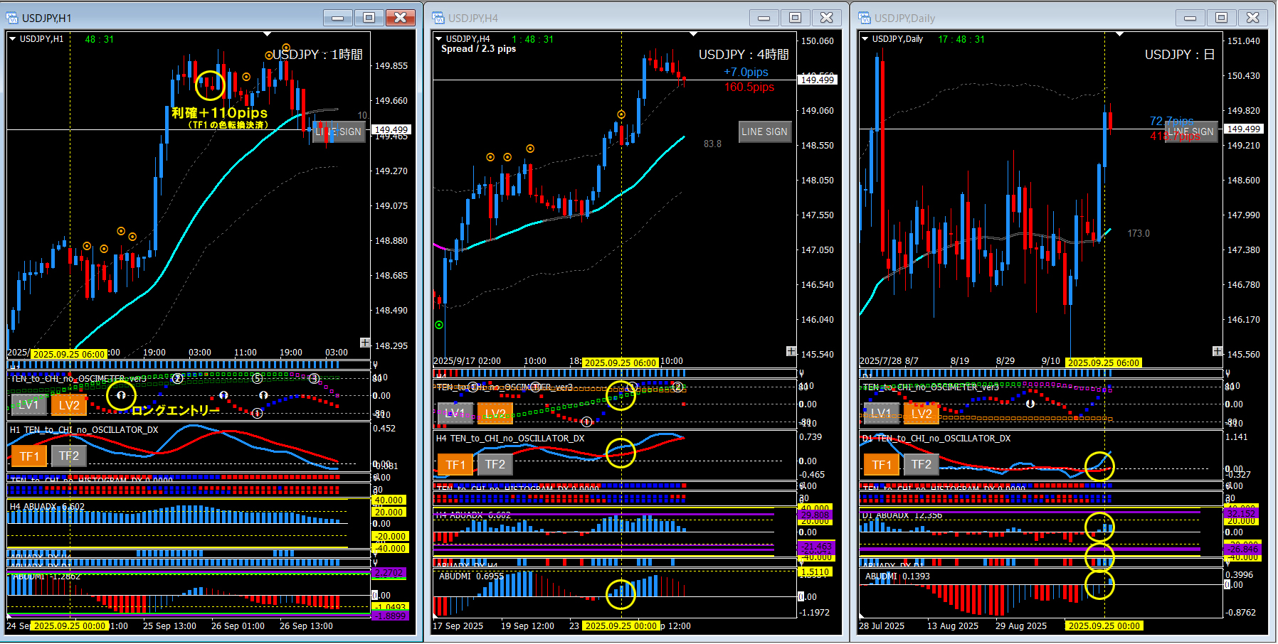 【2025年9月28日】天と地のインジケーターのデイスイング手法検証(ドル円)