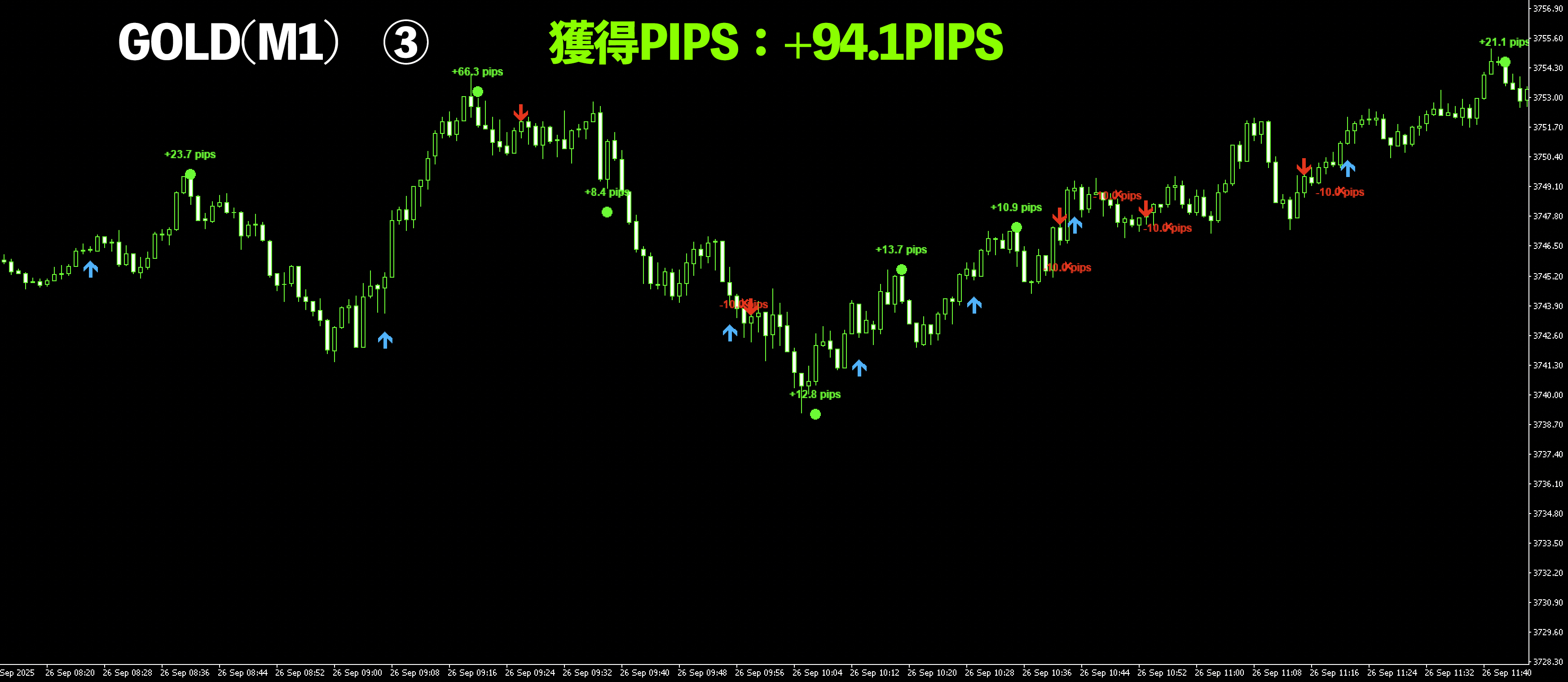そこで今回は、9/26のGOLD 1分足を使った検証結果を公開します。