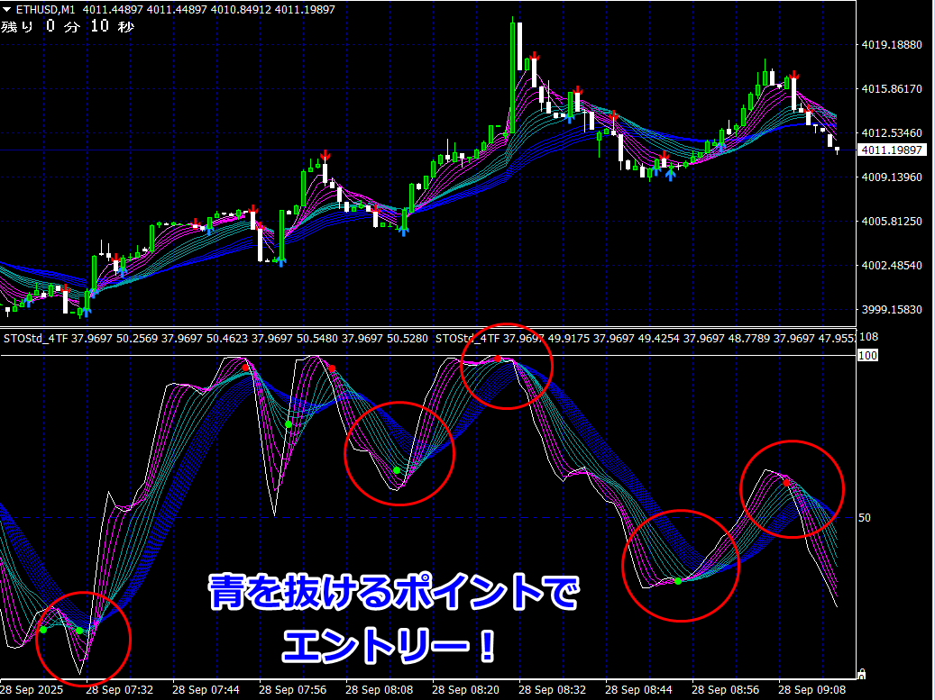 従いまして、上昇にしろ、下落にしろ、エントリーのねらい目は