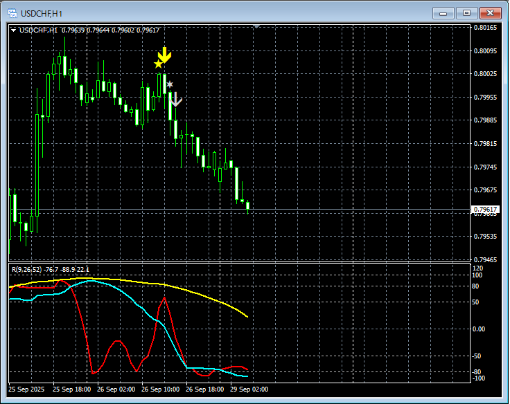 質実剛健FX mBDSR(RCI2本フィルター)のサインとR1R2S2のサインの両方を活用する(56) ドルスイス 1時間足