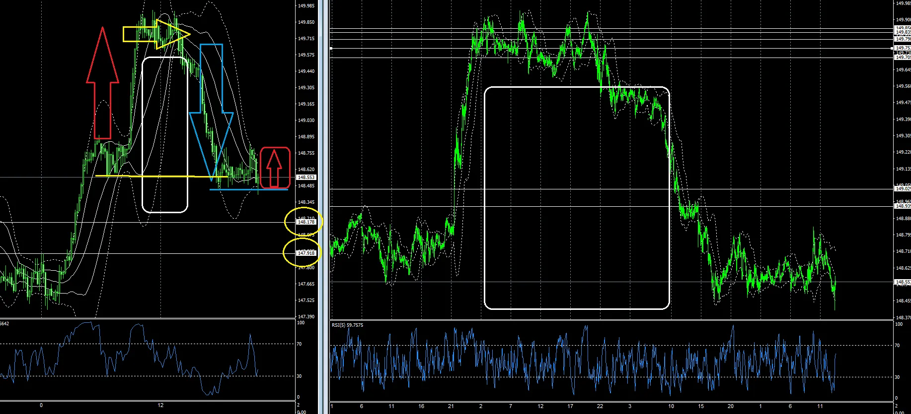 ドル円1時間足&5分足チャート