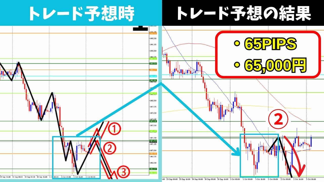 【②が的中し65,000円:2025年10月2日のトレード予想の結果】【的中率90%を超えるトレード予想がたった3分で分かる!】