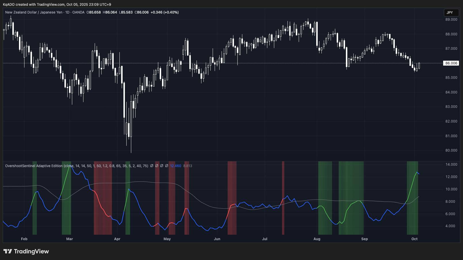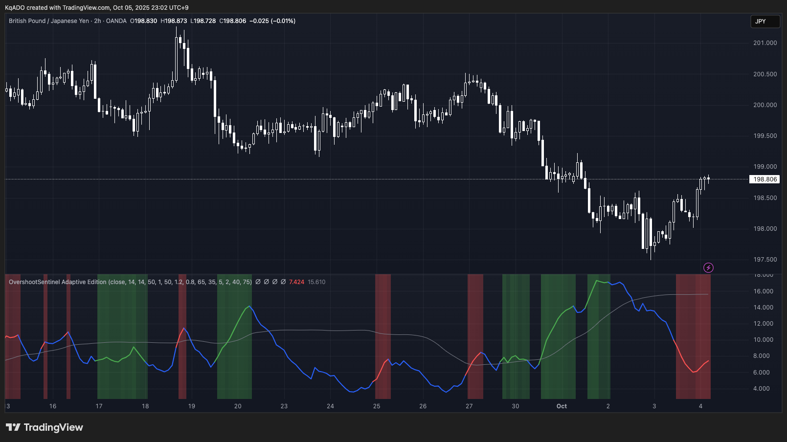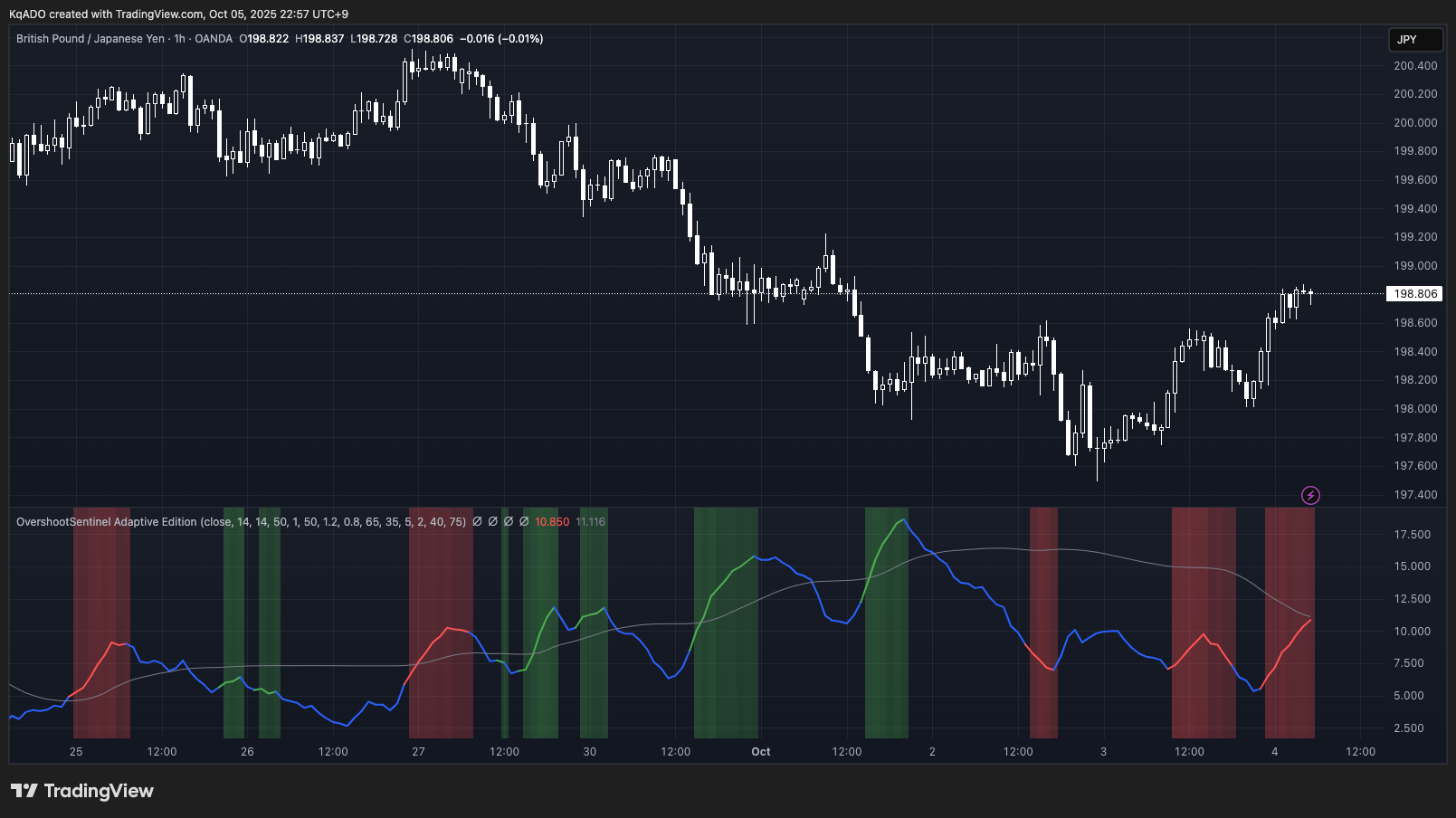 Overshoot Sentinel -Adaptive Edition-インジケーターを使用して週明け注目チャートを見ていきます。