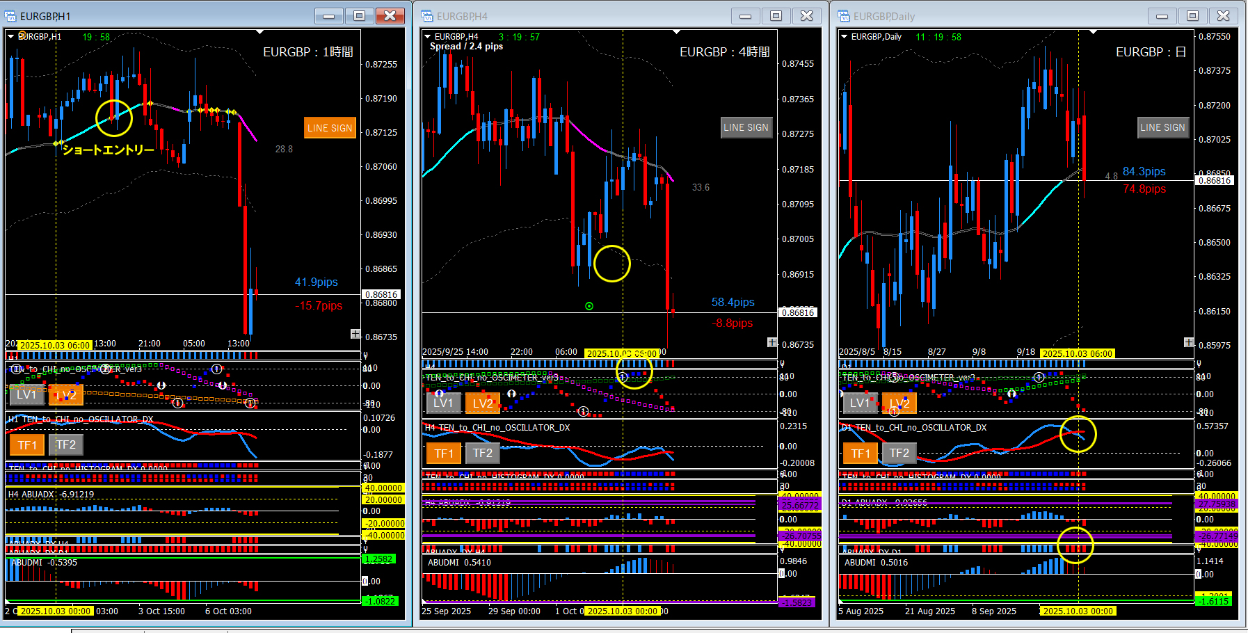 ユロポン(EURGBP)/ 1時間足+4時間足+日足 過去検証