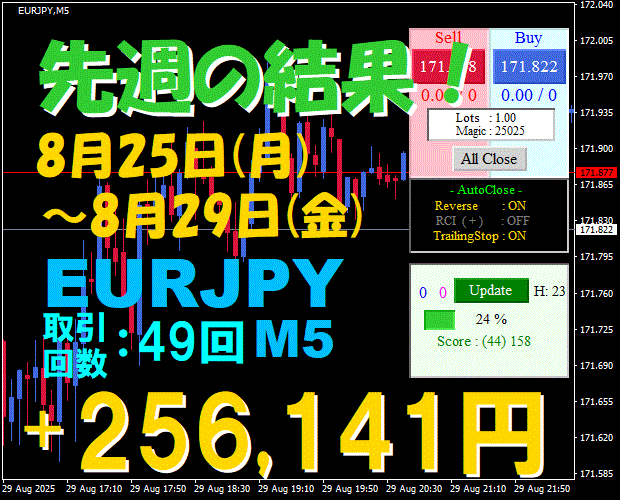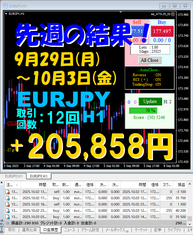 【先週の結果】EURJPY M5 『ATS-25』9月29日(月)~10月3日(金)