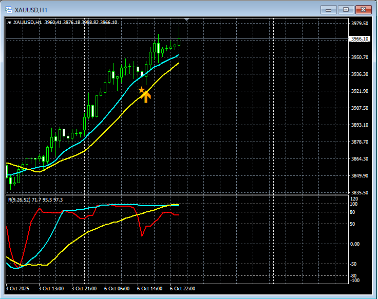 質実剛健FX【RCIを極めて移動平均線フィルターで勝つ!! ゴールド XAUUSD 1時間足】mBDSRのサイン