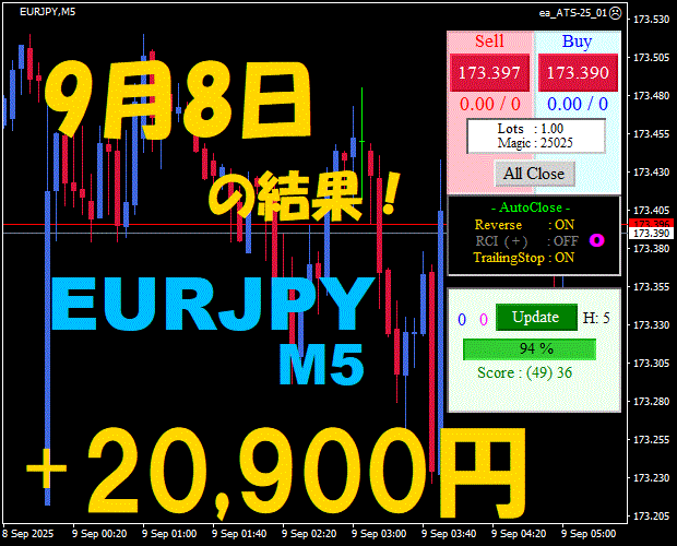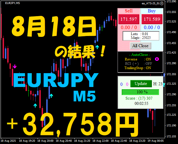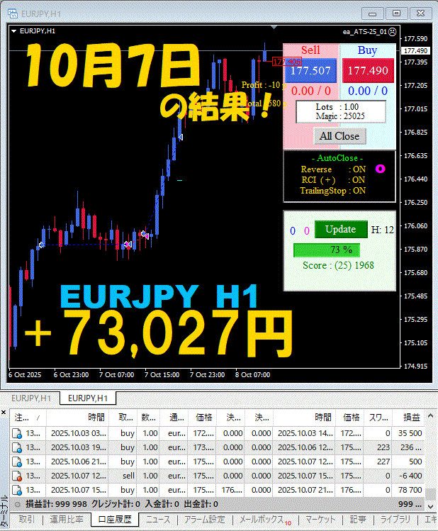 【前日の結果】EURJPY H1 / M5 『ATS-25』10月7日