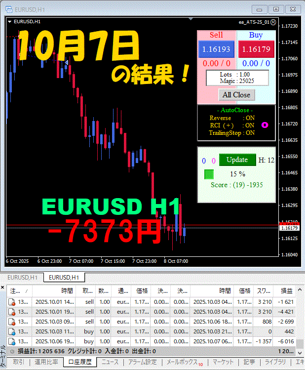 【前日の結果】EURUSD H1 / M5 『ATS-25』10月7日