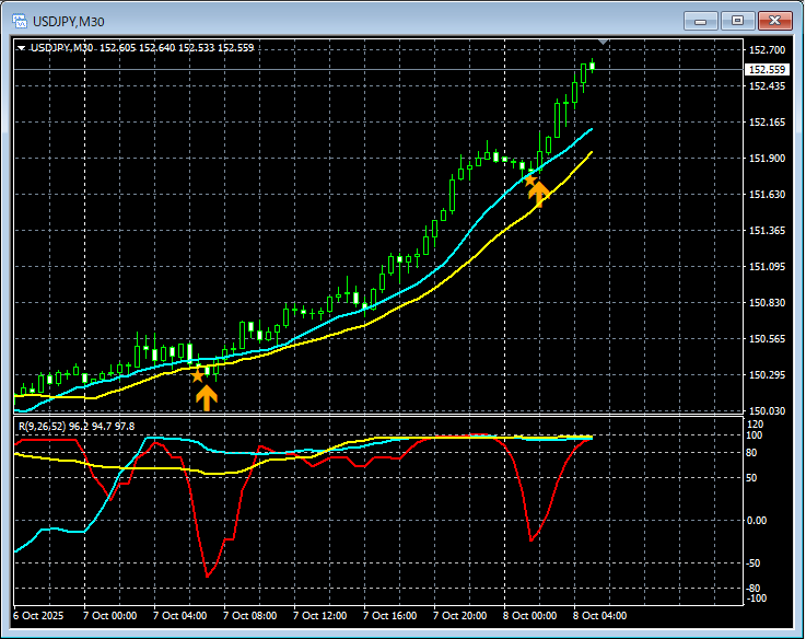 質実剛健FX【RCIを極めて移動平均線フィルターで勝つ!! ドル円 30分足】mBDSRのサイン