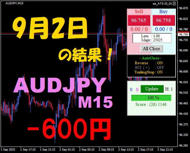 【AUDJPY M15】前日の結果『ATS-25』 10月7日