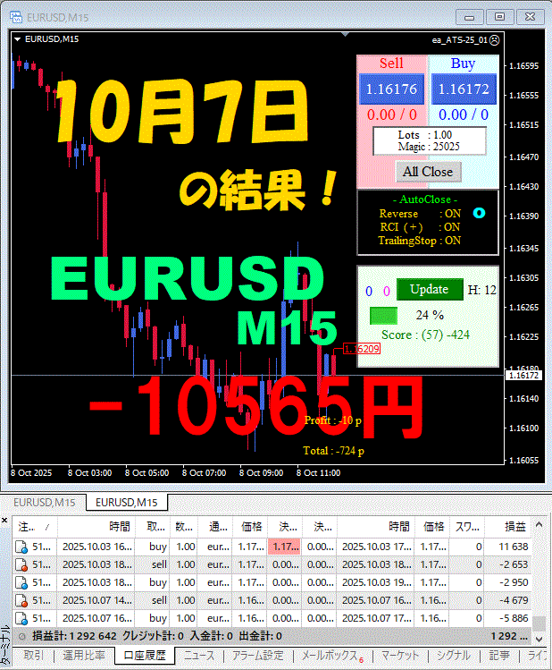 【EURUSD M15】前日の結果『ATS-25』 10月7日