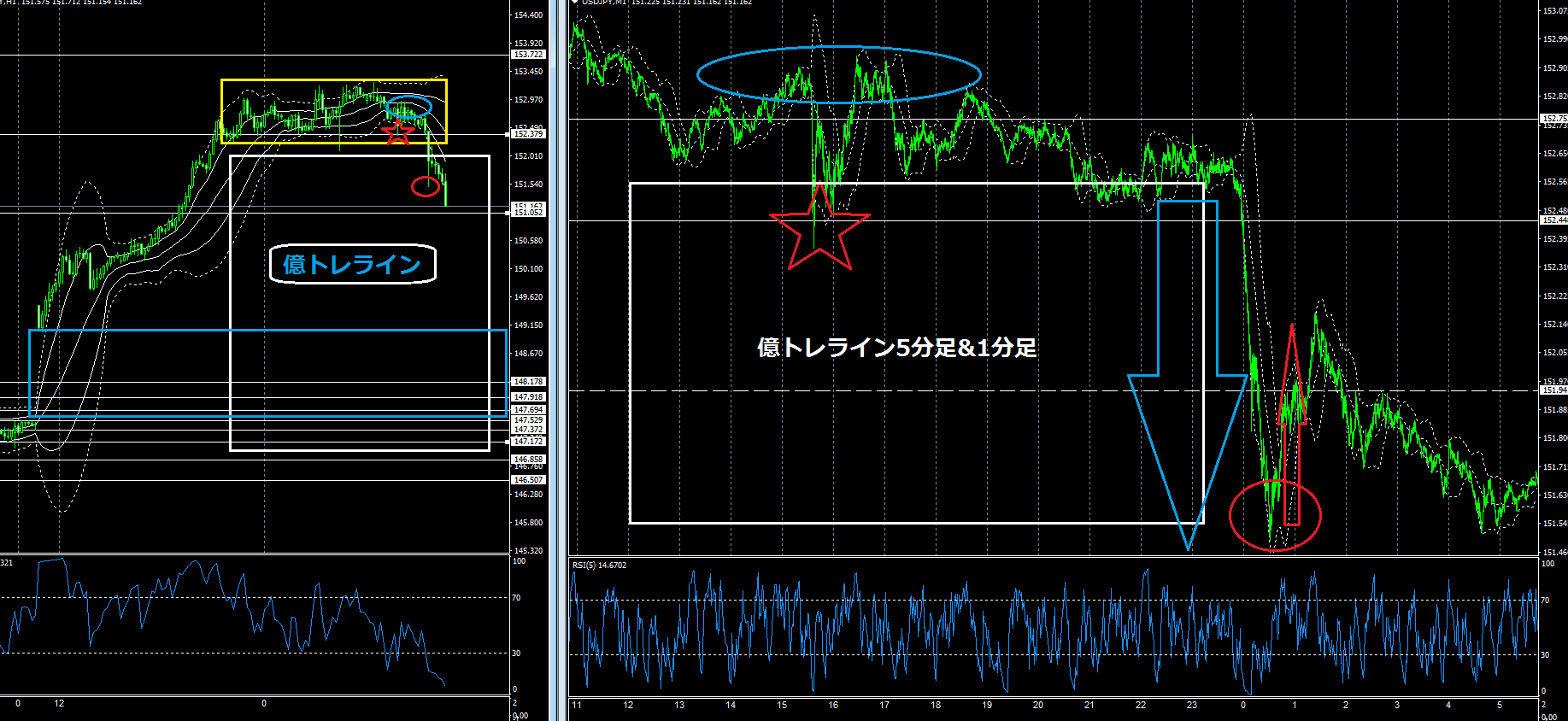 基本は億トレチャートに億トレラインを起点にしていますので、億トレユーザーの皆様も、同じような観察や監視は出来たと思います。