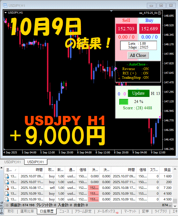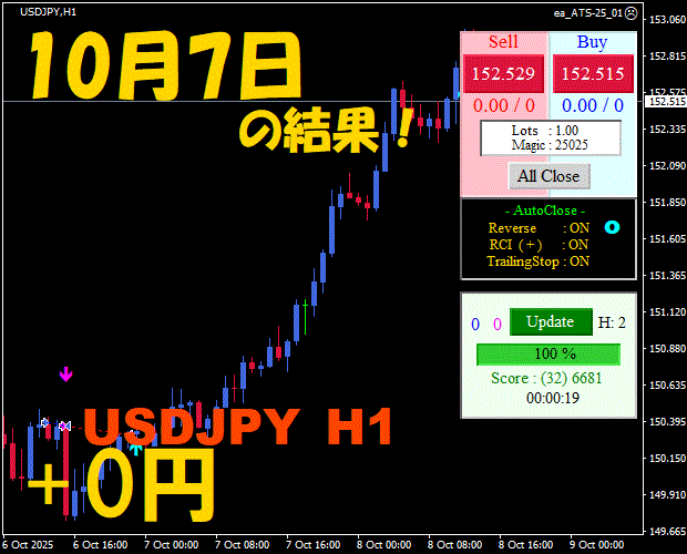 【前日の結果】USDJPY H1 / M5 『ATS-25』10月9日