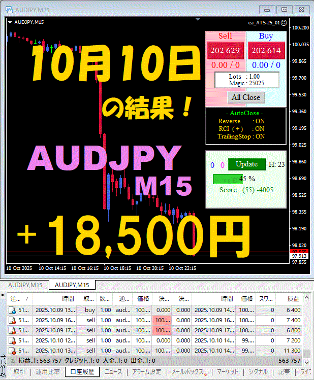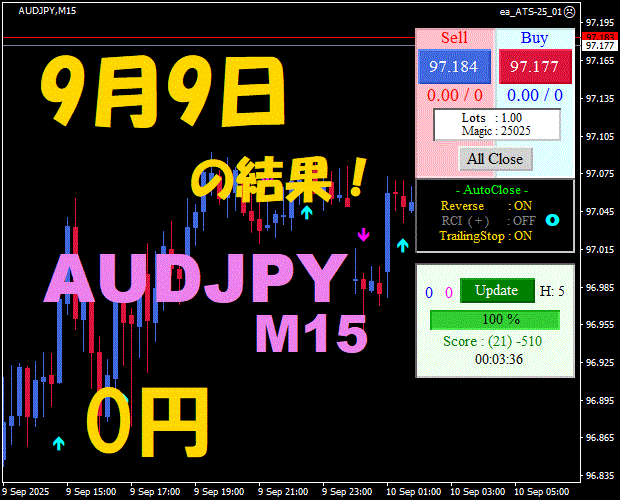 【AUDJPY M15】前日の結果『ATS-25』 10月10日
