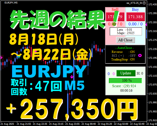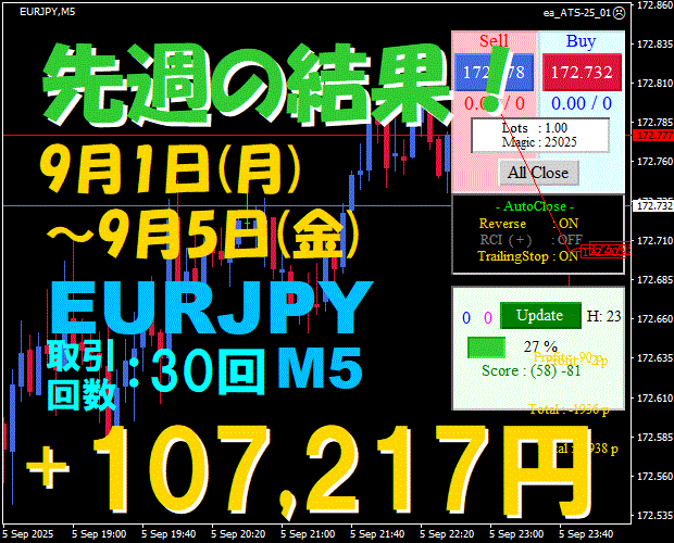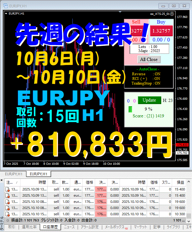 【先週の結果】EURJPY H1 『ATS-25』10月6日(月)~10月10日(金)