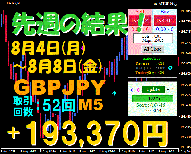 【先週の結果】GBPJPY M5 『ATS-25』9月1日(月)~9月5日(金)