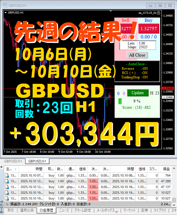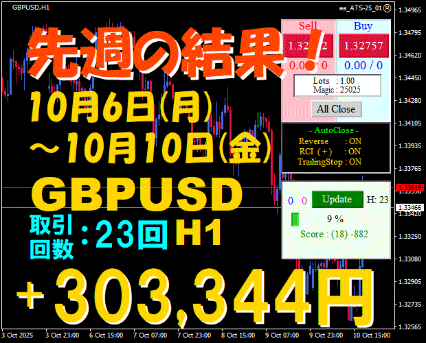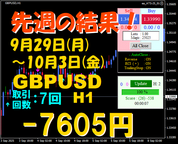 【先週の結果】GBPUSD H1 『ATS-25』10月6日(月)~10月10日(金)