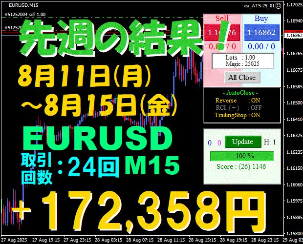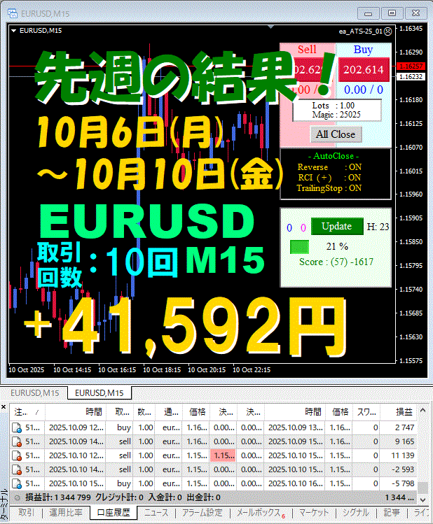 M15 週間報告!【EURUSD】ATS-25 ☆10月6日(月)~10月10日(金)