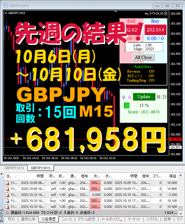 M15 週間報告!【GBPJPY】ATS-25 ☆10月6日(月)~10月10日(金)