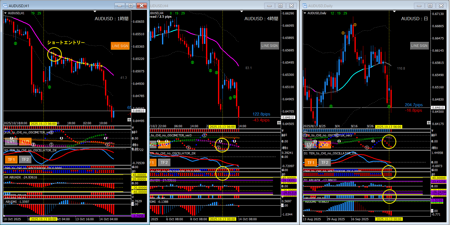 オジドル(AUDUSD)/ 1時間足+4時間足+日足 過去検証