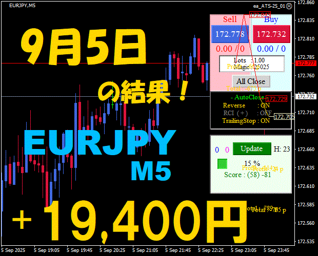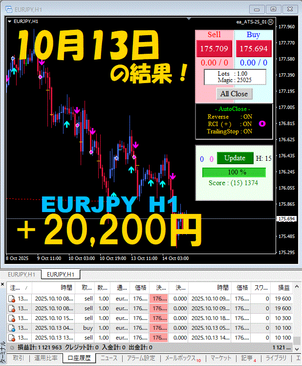 【前日の結果】EURJPY H1 / M5 『ATS-25』10月13日