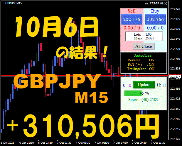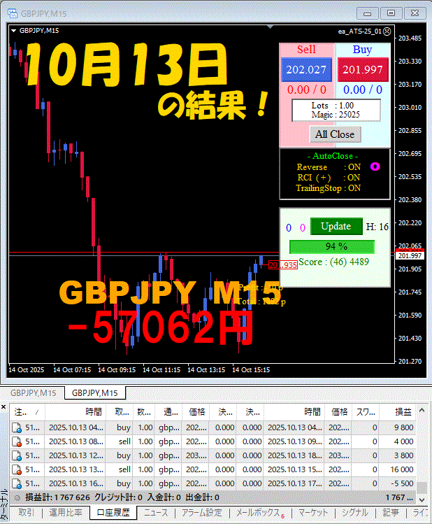 【GBPJPY M15】前日の結果『ATS-25』 10月13日