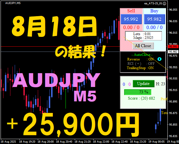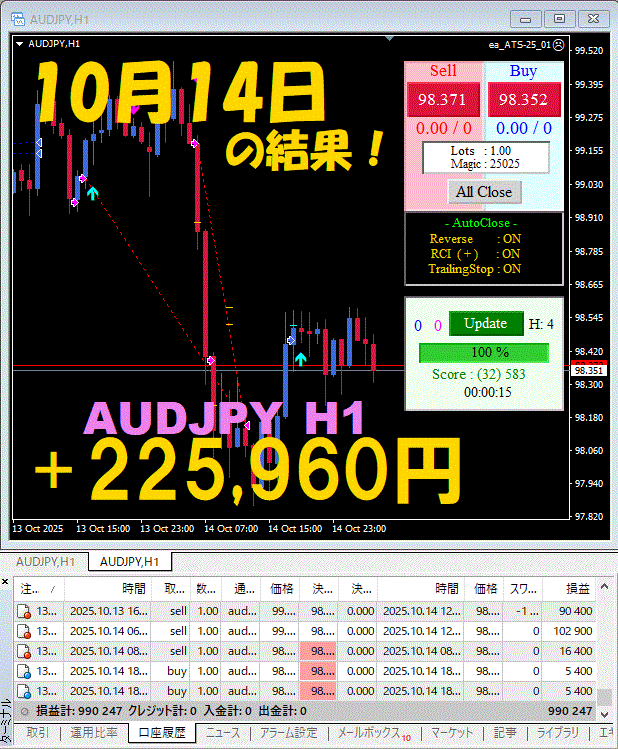 【前日の結果】AUDJPY H1 / M5 『ATS-25』10月14日