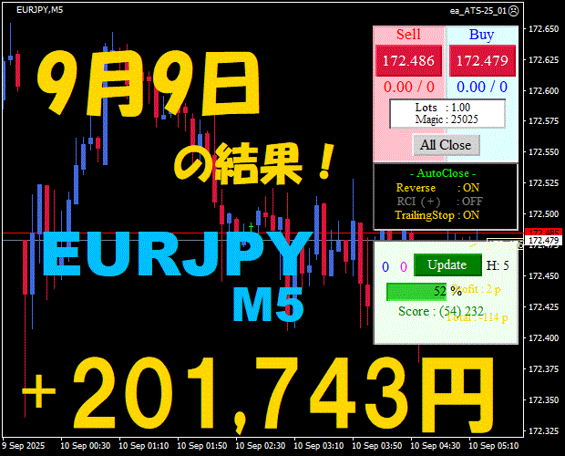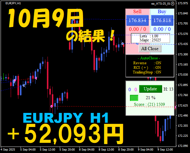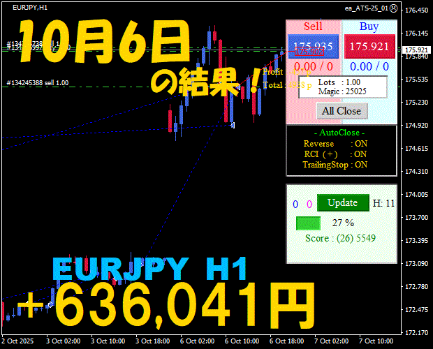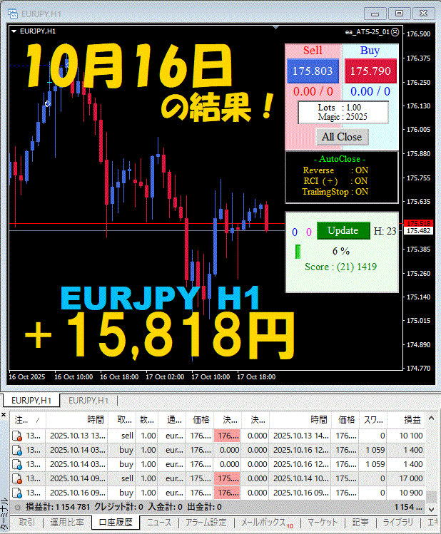 【前日の結果】EURJPY H1 / M5 『ATS-25』10月16日