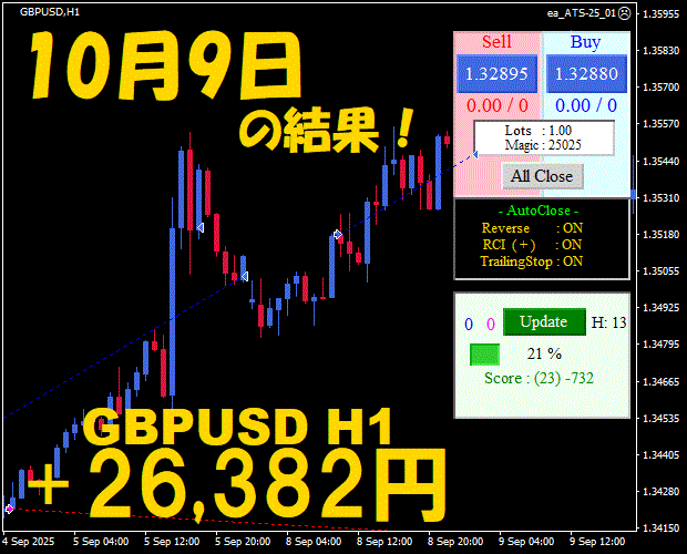 【前日の結果】GBPJPY H1 / M5 『ATS-25』10月16日