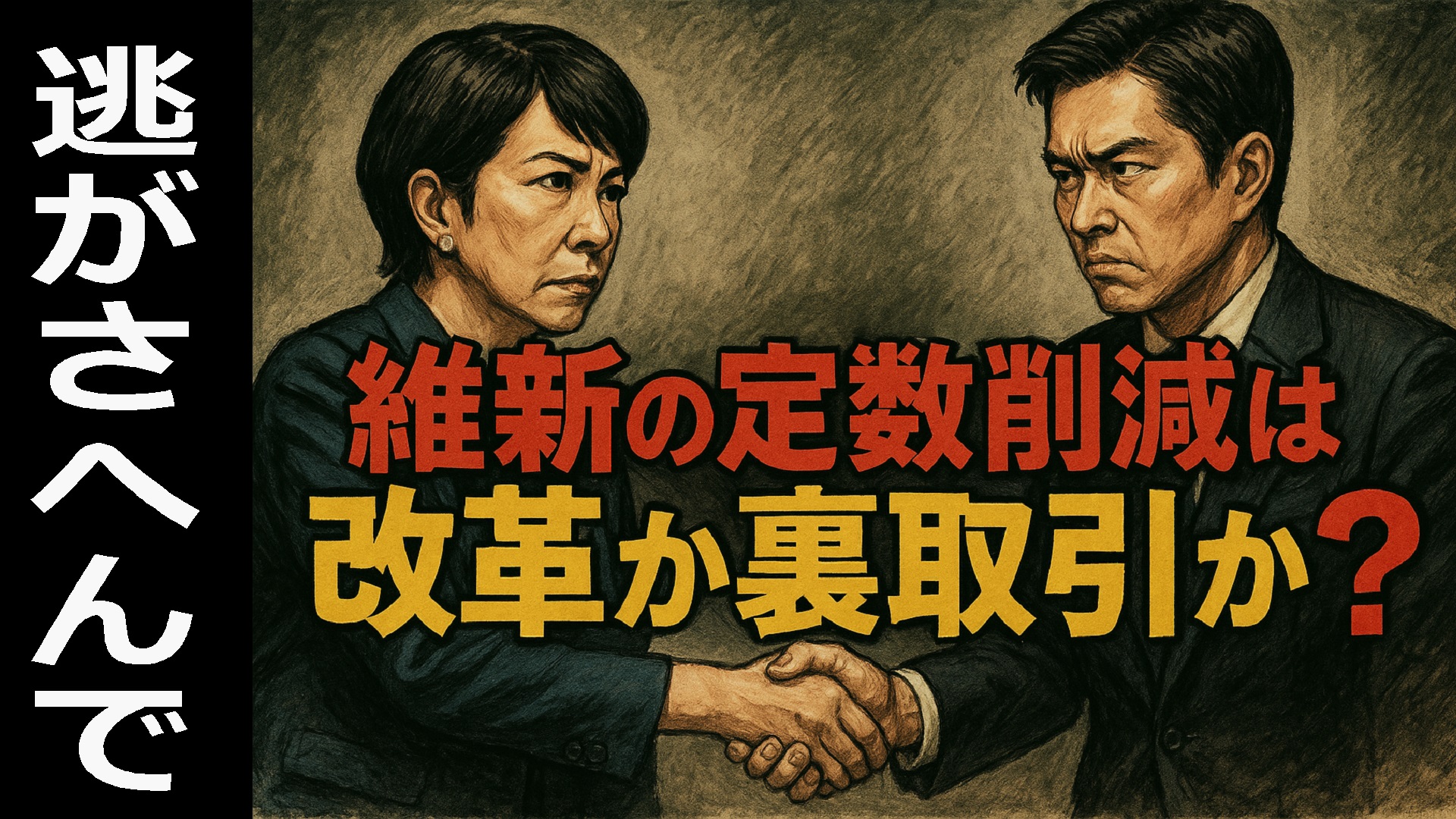 èªæ°ãšç¶æ°ã®é£ç«åè°ãé²ãäžãçŠç¹ãšãªã£ãŠããã®ããåœäŒè°å¡ã®å®æ°åæžãã§ããäžèŠãããšâ身ãåãæ¹é©âãšããŠå¥œæãæãããããããŒãã§ããããã®è£ã«ã¯æ¿æ²»å¢åã®ææãè€éã«çµ¡ãã§ããã®ãããããŸããã