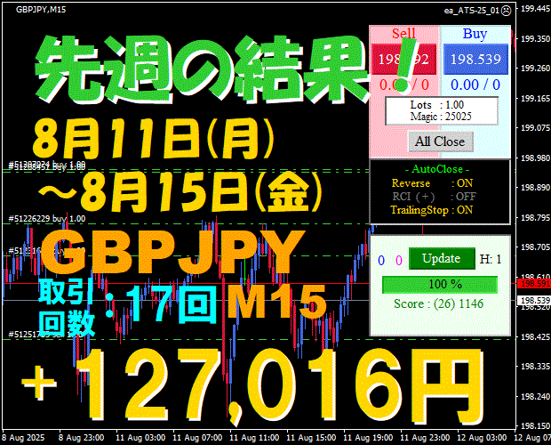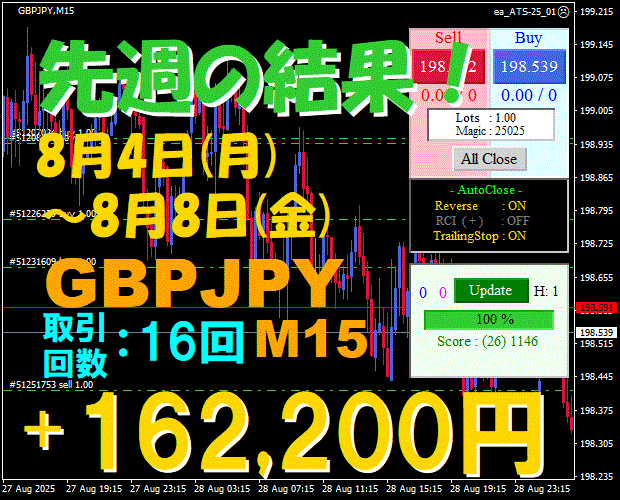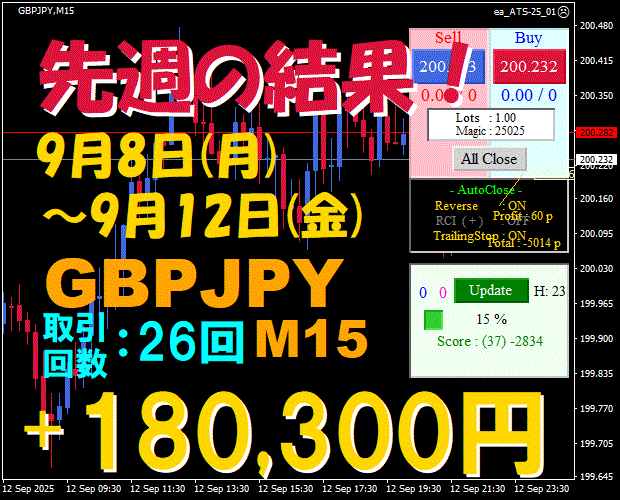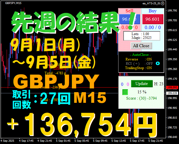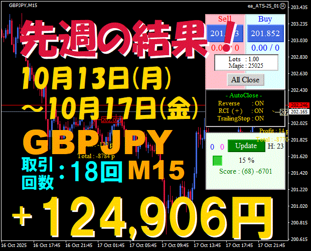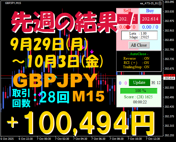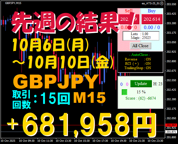 M15 週間報告!【GBPJPY】ATS-25 ☆10月6日(月)~10月10日(金)