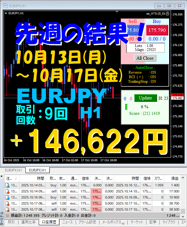 【先週の結果】EURJPY H1 『ATS-25』10月13日(月)~10月17日(金)