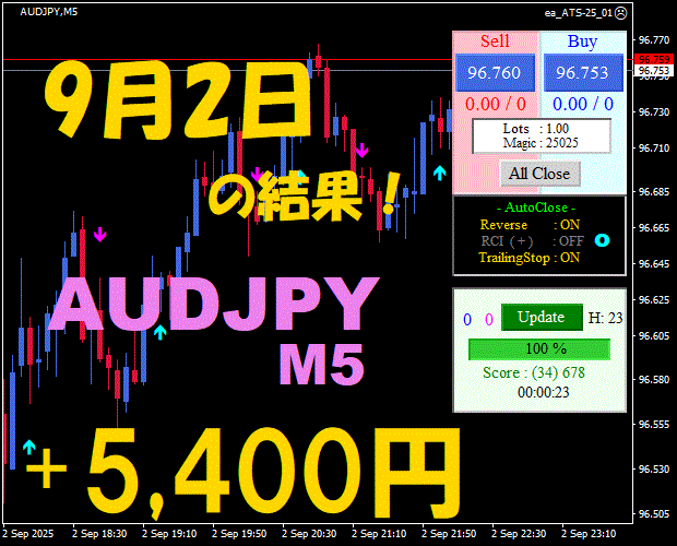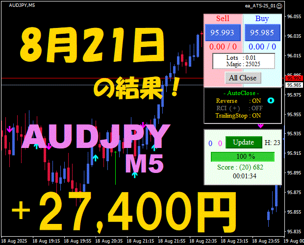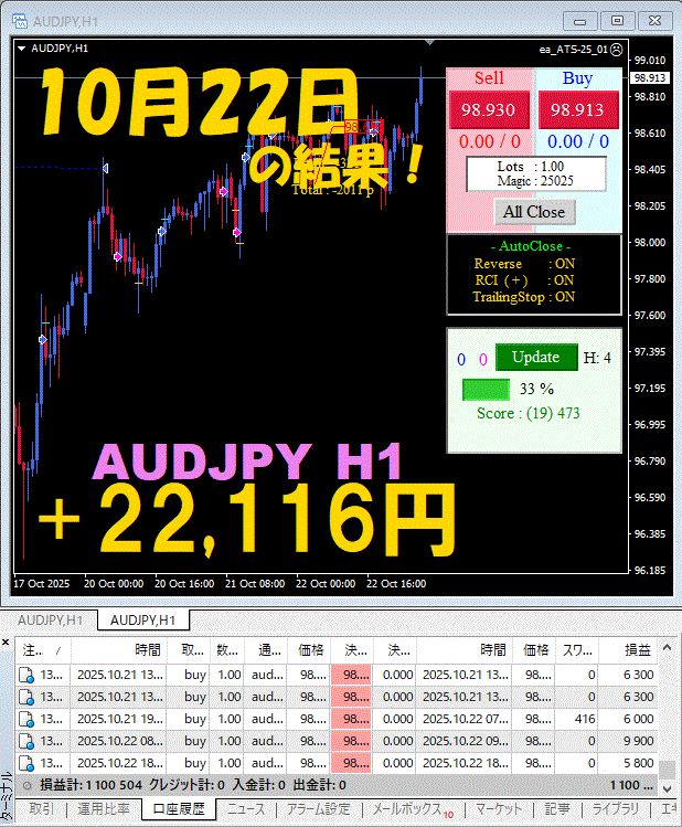 【前日の結果】AUDJPY H1 / M5 『ATS-25』10月22日