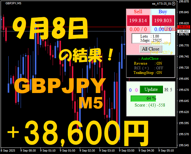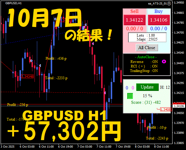 【前日の結果】GBPJPY H1 / M5 『ATS-25』10月22日