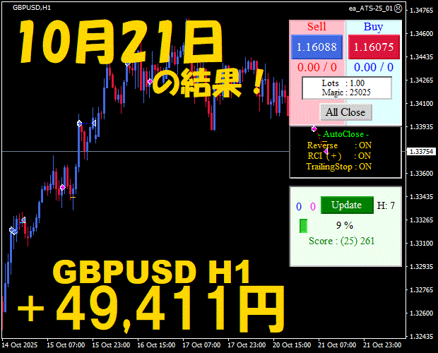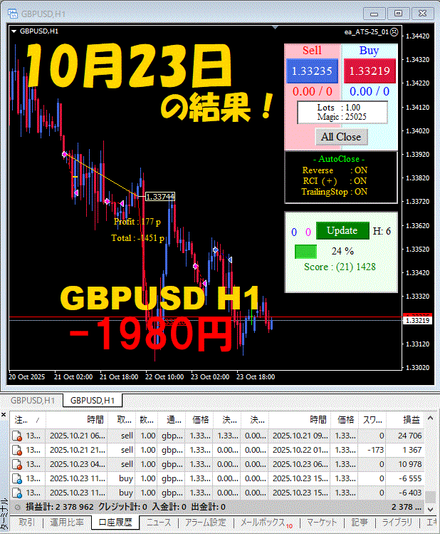 【前日の結果】GBPJPY H1 / M5 『ATS-25』10月23日
