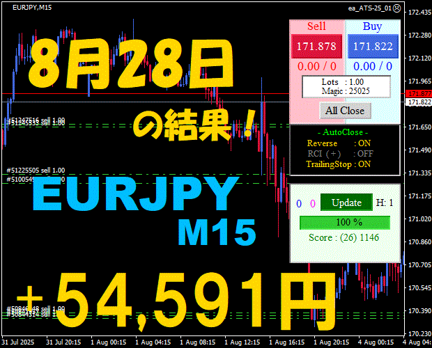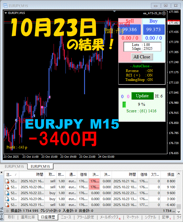 【EURJPY M15】前日の結果『ATS-25』 10月23日