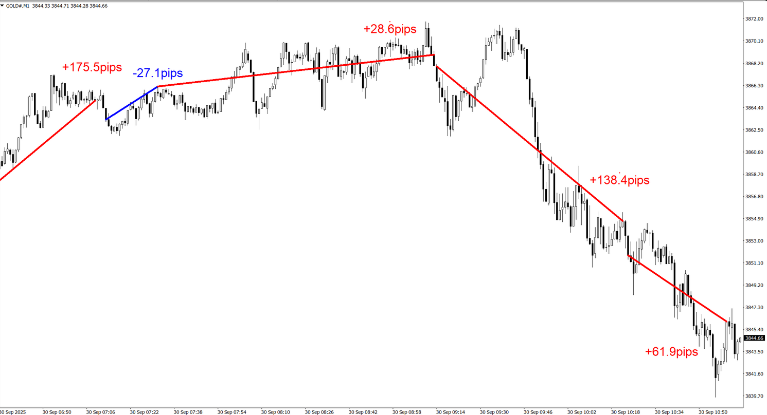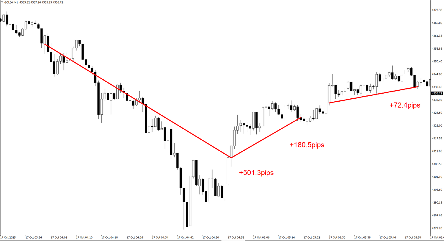 約3時間のトレードで、合計+568.4pipsの利益となりました。