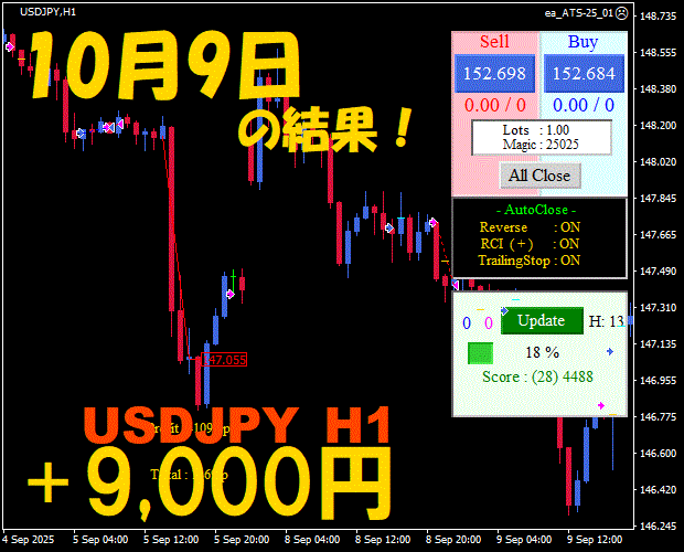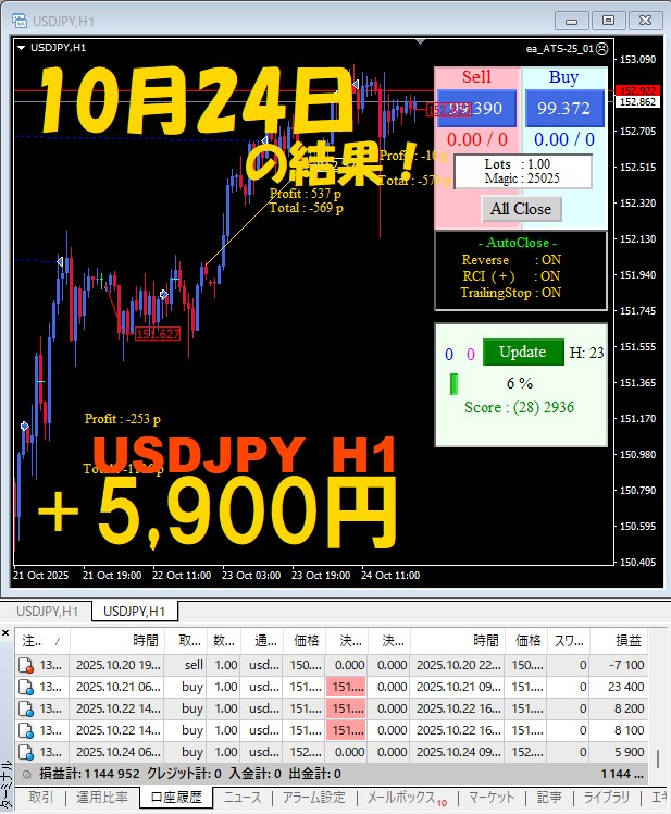【前日の結果】USDJPY H1 / M5 『ATS-25』10月24日