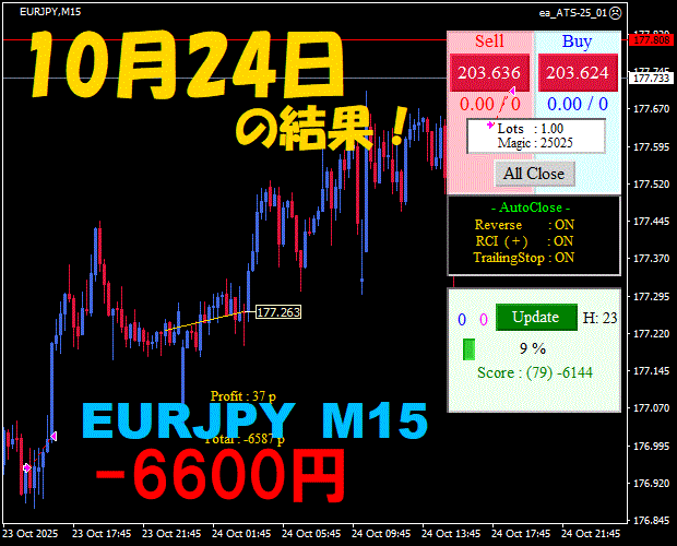 【EURJPY M15】前日の結果『ATS-25』 10月24日
