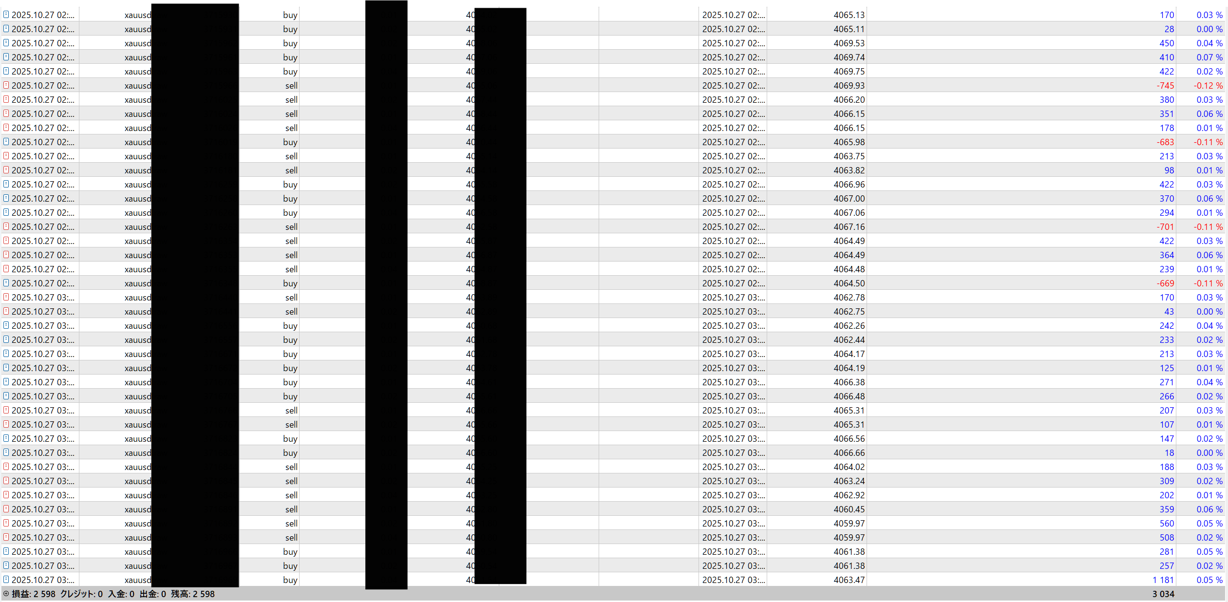 こちらは損切りなしで、3000円まで到達して自動終了していたようです。