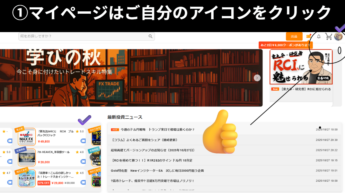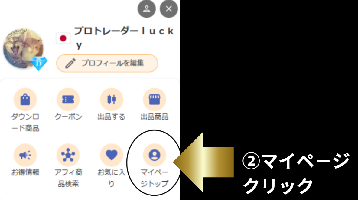 まず、ゴゴジャンにログインして右上の アイコン をクリックします。
