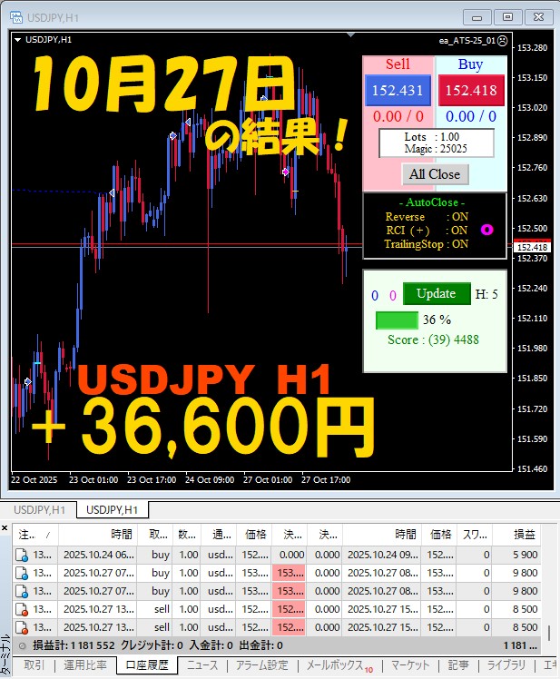 【前日の結果】USDJPY H1 / M5 『ATS-25』10月27日