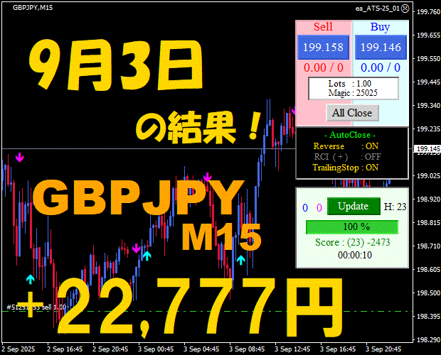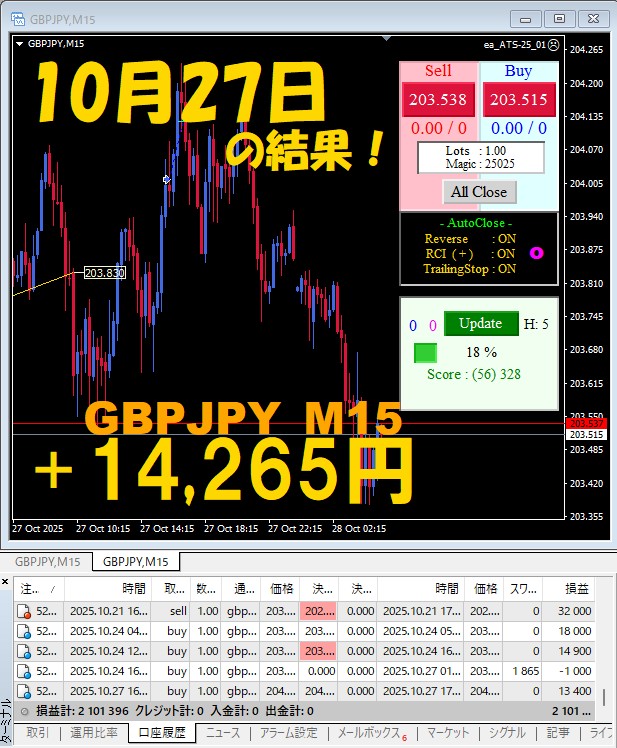【GBPJPY M15】前日の結果『ATS-25』 10月27日