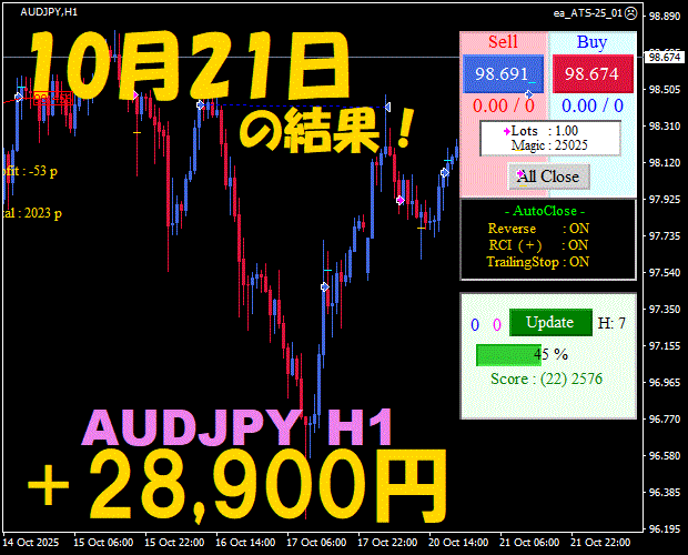 【前日の結果】AUDJPY H1 / M5 『ATS-25』10月28日
