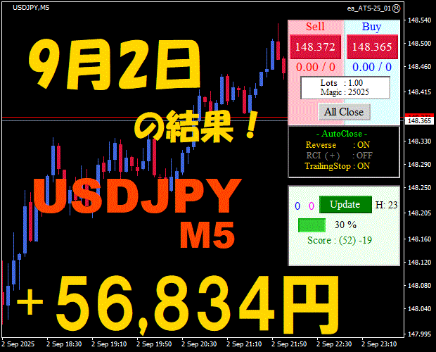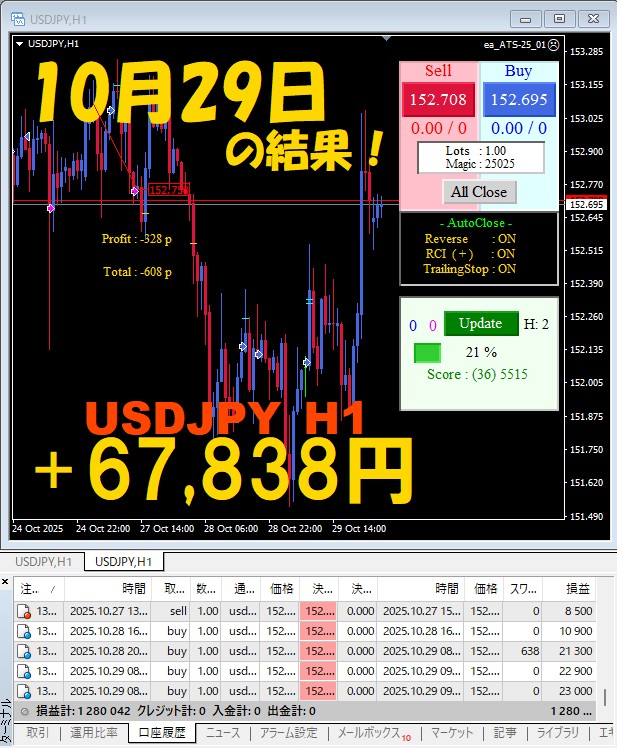 【前日の結果】USDJPY H1 / M5 『ATS-25』10月29日