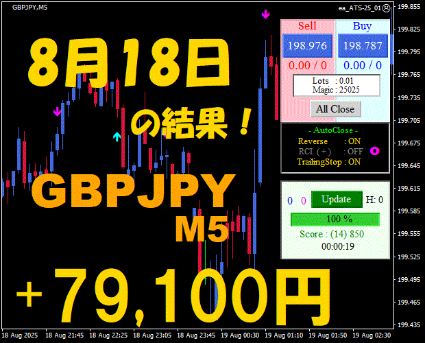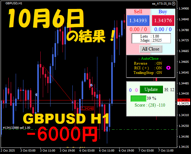 【前日の結果】GBPJPY H1 / M5 『ATS-25』10月29日