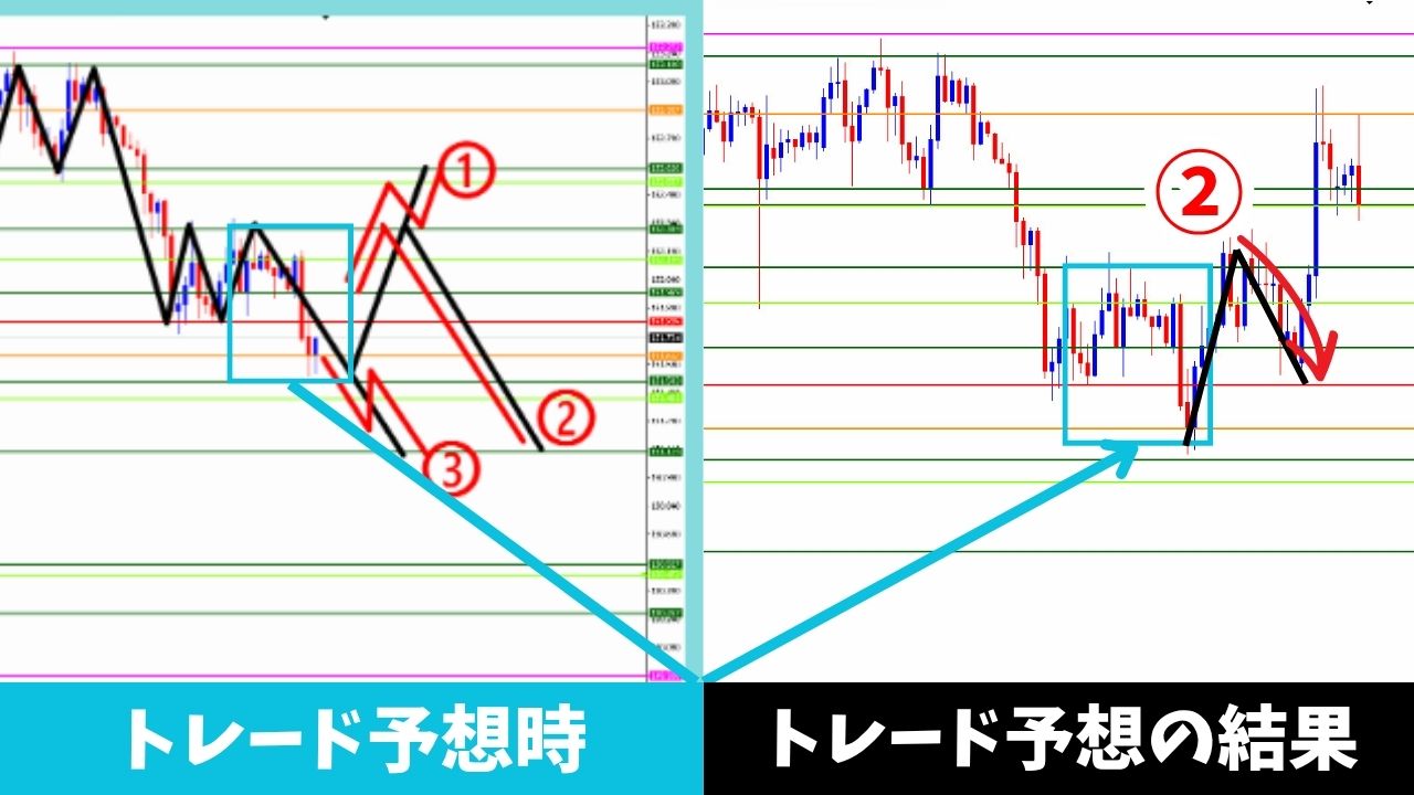 波動マスターFXの『超絶シンプル手法』の電子書籍内に勝率80%を超える相場予想のやり方も公開しておりますので、ご購入者の方もマネするだけで、下記と同じ相場予想が立てられるようになります。