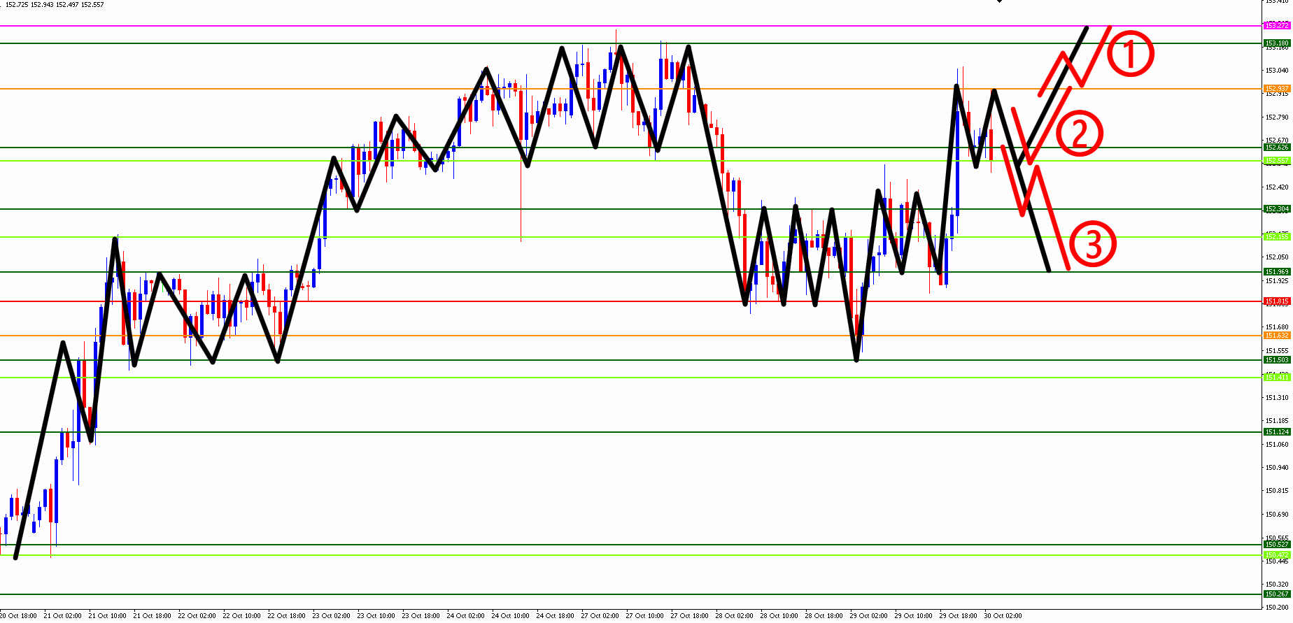 【赤丸②】152.545円あたりが機能すれば買い。
